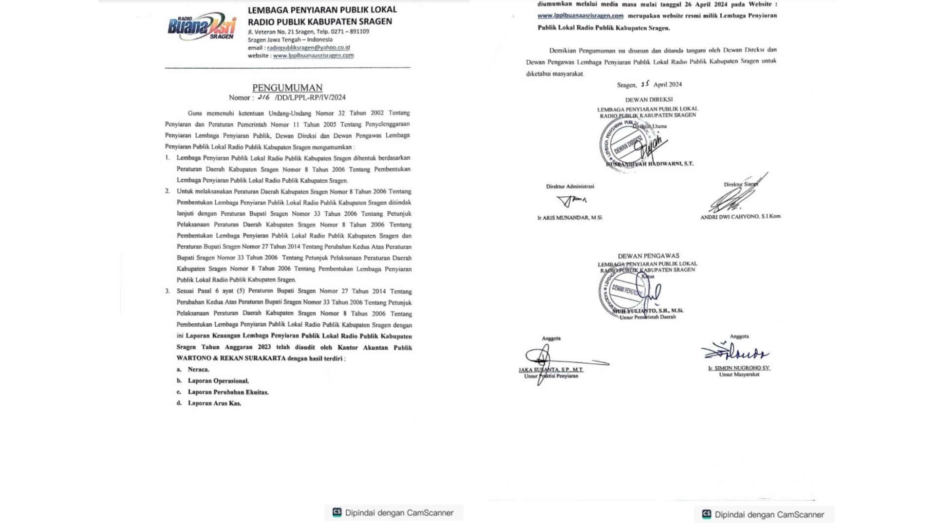 Pengumuman Laporan Keuangan Tahun Anggaran 2023